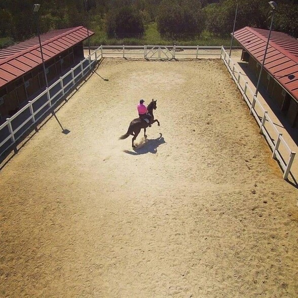 El complejo se asienta sobre casi dos hectáreas de terreno y cuenta con edificaciones que incluyen cuadras, sala polivalente, cocina, oficina, guadarnés y un acogedor snack-bar. Su espacio exterior incorpora un porche para eventos con vistas panorámicas al mar y la montaña, un bungalow independiente, amplias zonas de aparcamiento y dos pistas de equitación. El suministro de agua procede de un depósito legalizado y la electricidad llega mediante acometida exclusiva, asegurando autonomía y continuidad operativa.