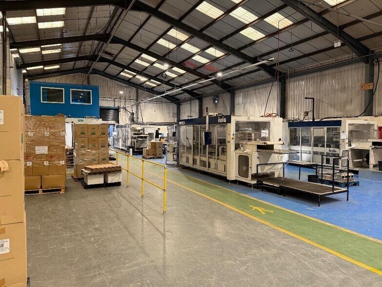 Eaves height of c.5.5m to the higher warehouse bays - Level access loading doors - Three phase electricity (up to 450KVA) - Gas supply - LED warehouse lighting - Two-storey offices including canteen / amenity facilities - Loading / unloading yard c.5.5m eaves Level access loading doors Up to 450KVA Two storey offices Loading yard