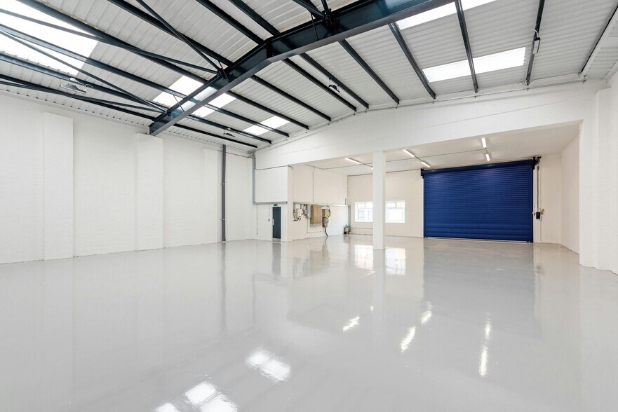 Comprehensively refurbished 1970s brock built terraced industrial unit of steel portal frame construction. The warehouse provides a clear internal height of approximately 5m accessed via a single roller shutter door to the front of the unit. First floor open plan offices are accessed via separate personnel entrance.