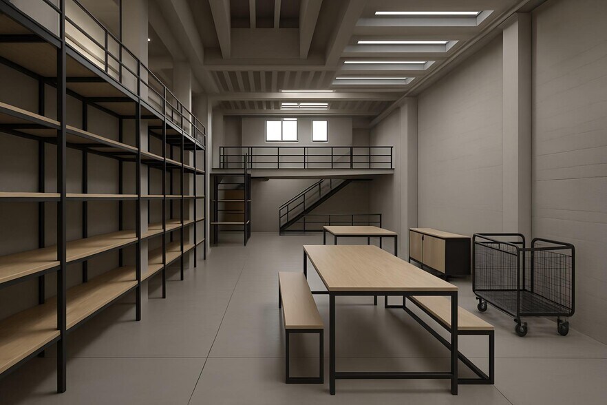 La nave dispone de una planta baja de 372 m2, diáfana y con una altura libre de 8 metros, lo que permite una óptima capacidad de almacenamiento en altura o la instalación de estanterías industriales. La primera planta, de 312 m2, es ideal para oficinas, zona administrativa, salas técnicas o áreas de apoyo a la actividad principal, ofreciendo una clara separación entre zona operativa y gestión.