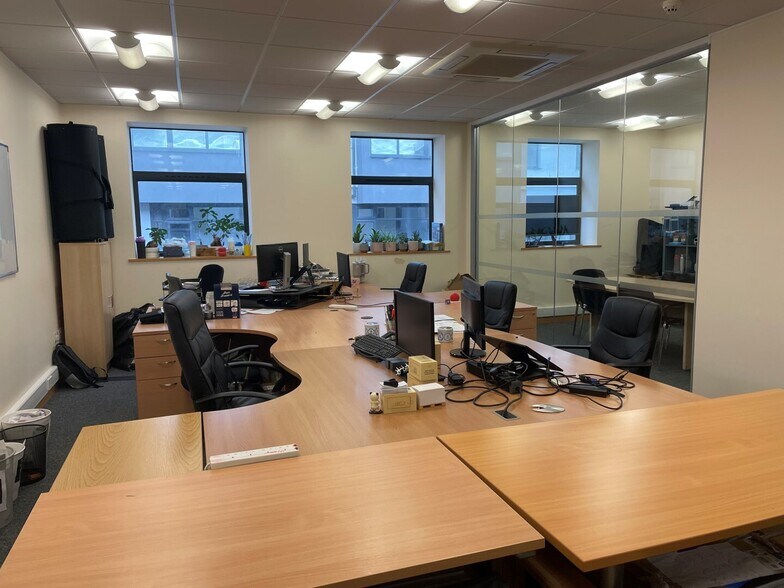 The suite is mainly open plan but currently with a glazed meeting room fitted. The office benefits from comfort cooling, has it's own kitchenette and has access to communal WCs.