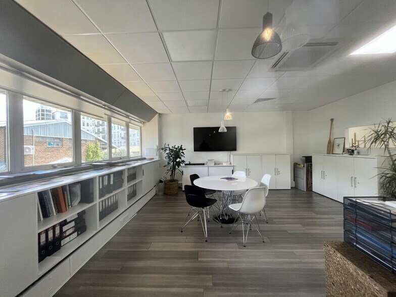 The ground floor contains a meeting room facility, workspace and storage with good floor to ceiling heights (3.2 M). Connected by internal stair ways, the first-floor office is equipped with a modern fitout, kitchenette, internal storage,and air conditioning as well as benefiting from good natural light. The property is of steel framed construction on two floors with cavity brick walls, double glazed windows and concrete flooring, under a shallow pitch panel clad roof.