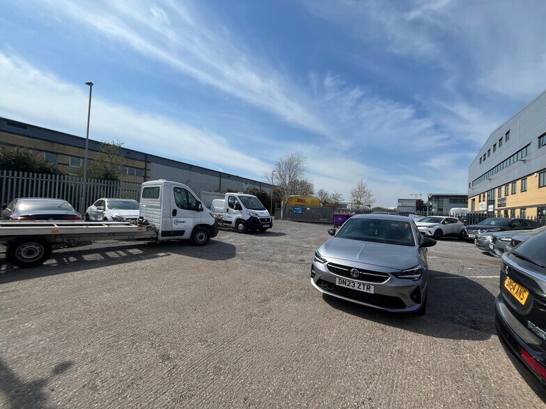 The site comprises a main building with secure gated yard. The warehouse benefits from a concertina loading door, eaves height of 3.215m, and ridge height of 6.68m. The ground floor features office space and a vehicle workshop, with gas and electric heating. £165,000 per annum exclusive without additional yard or £237,500 per annum exclusive with additional yard.