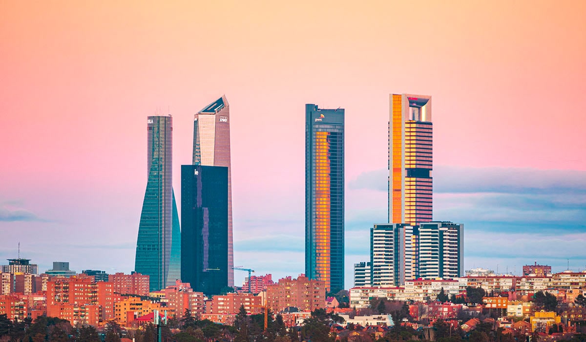 Los principales rascacielos del país se concentran en Madrid, concretamente en la zona empresarial de Cuatro Torres Business Area (CTBA), ubicada en el distrito Fuencarral-El Pardo. Estas imponentes torres comenzaron a levantarse en 2004, sobre los terrenos de la antigua Ciudad Deportiva del Real Madrid, y se inauguraron a finales de 2008.